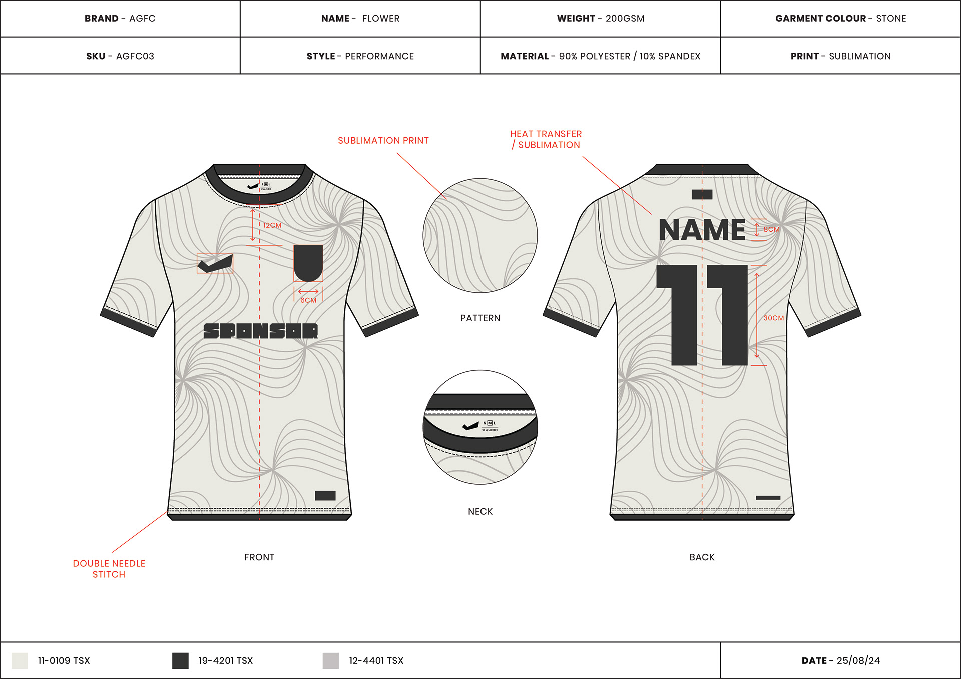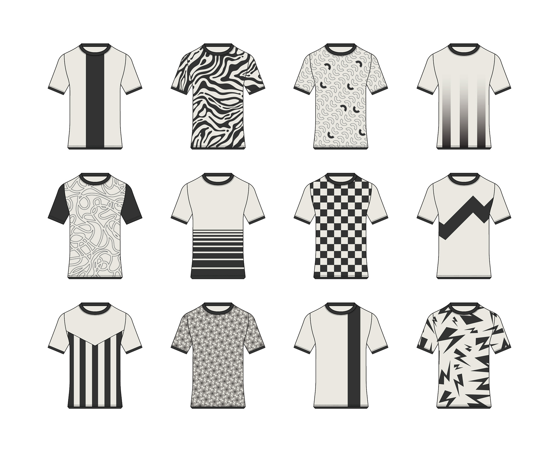 In this Work In Progress piece, I explore the creative possibilities of football shirt design. This exercise isn't tied to any particular club, allowing me the freedom to experiment with various styles, patterns, and aesthetics. I begin with 2D design explorations in neutral tones, focusing on form and composition. As the project develops, I refine these concepts into more detailed and specific designs, culminating in hero mockups that bring the shirts to life. This portfolio piece showcases my process and versatility in sportswear design.