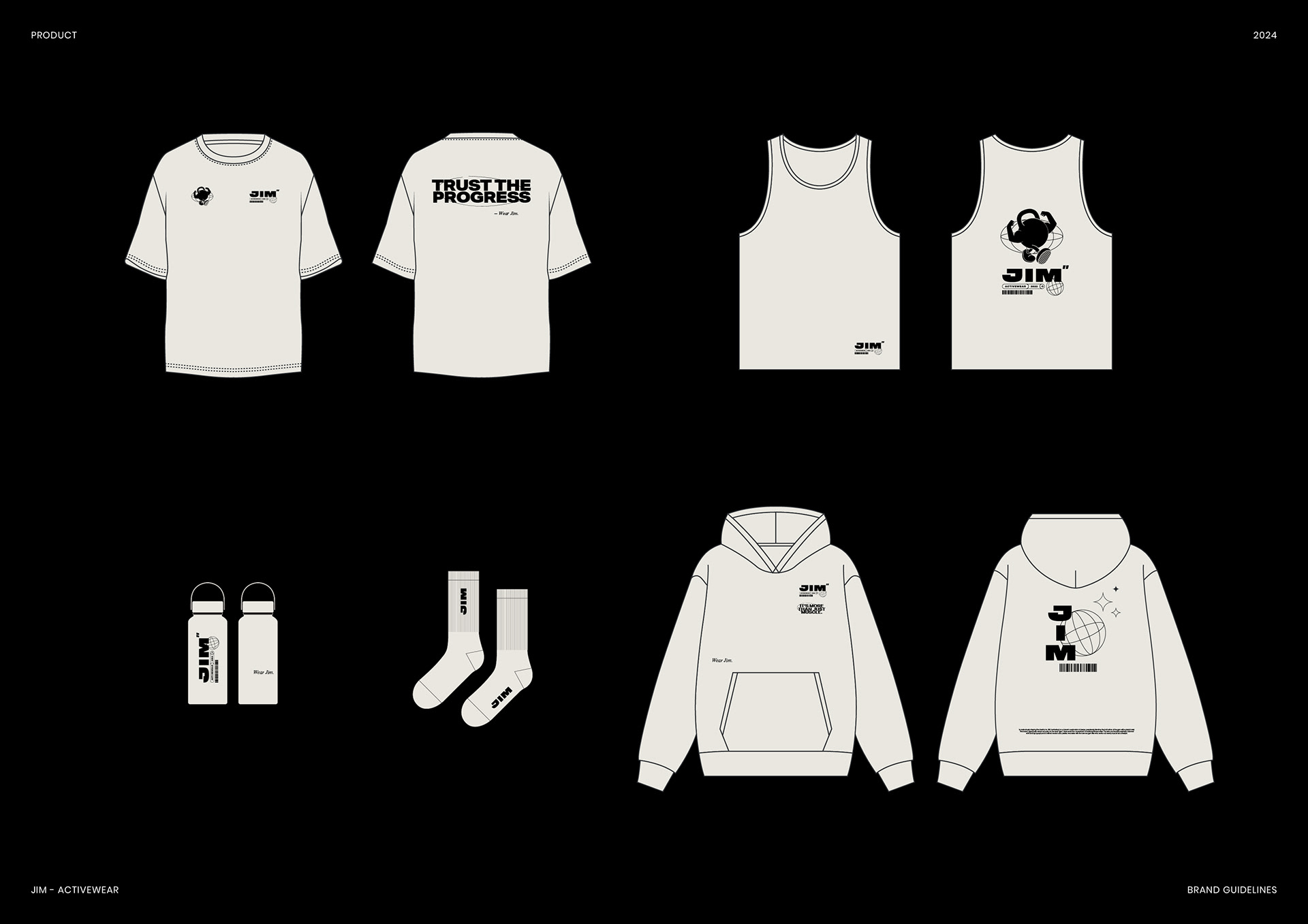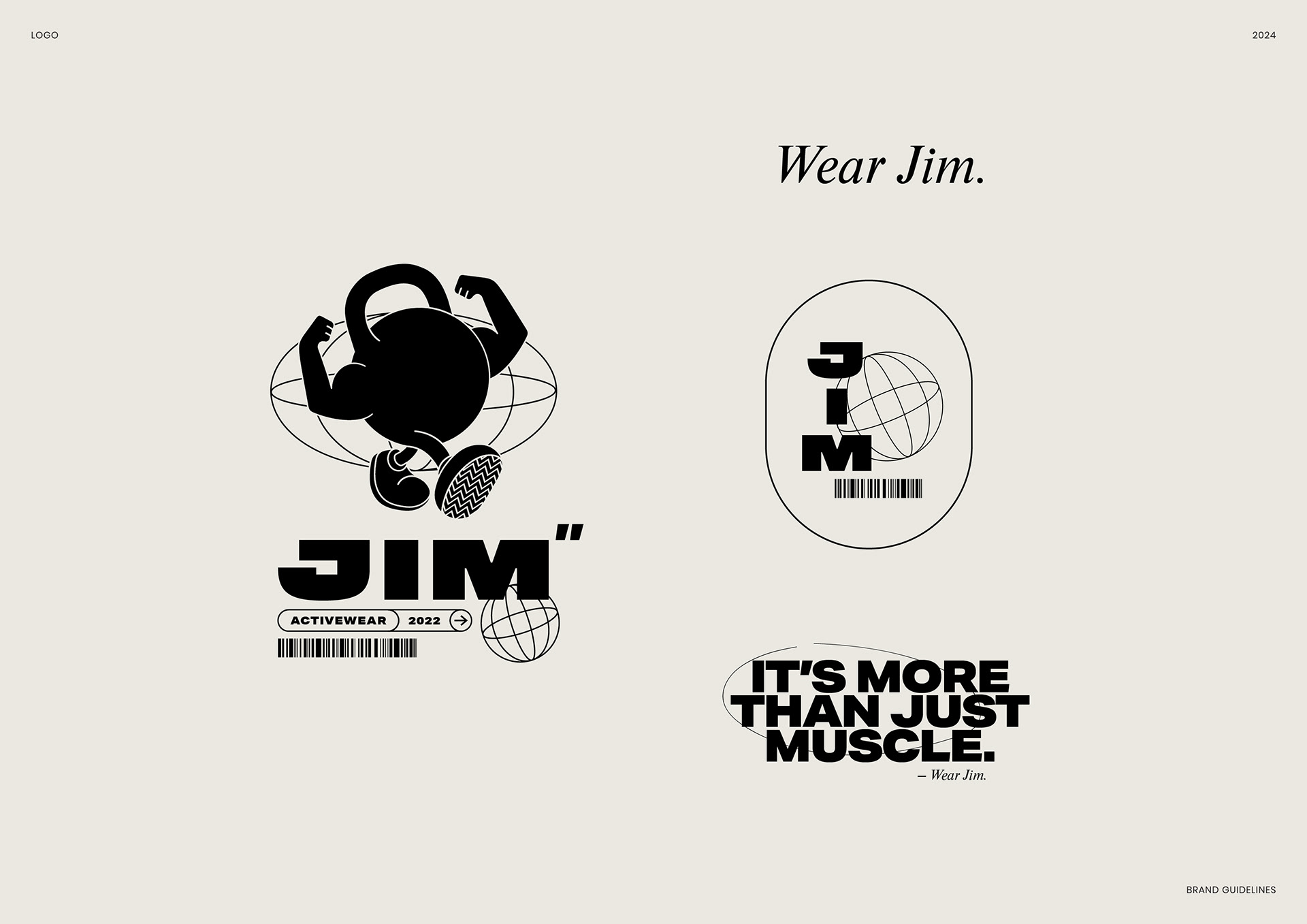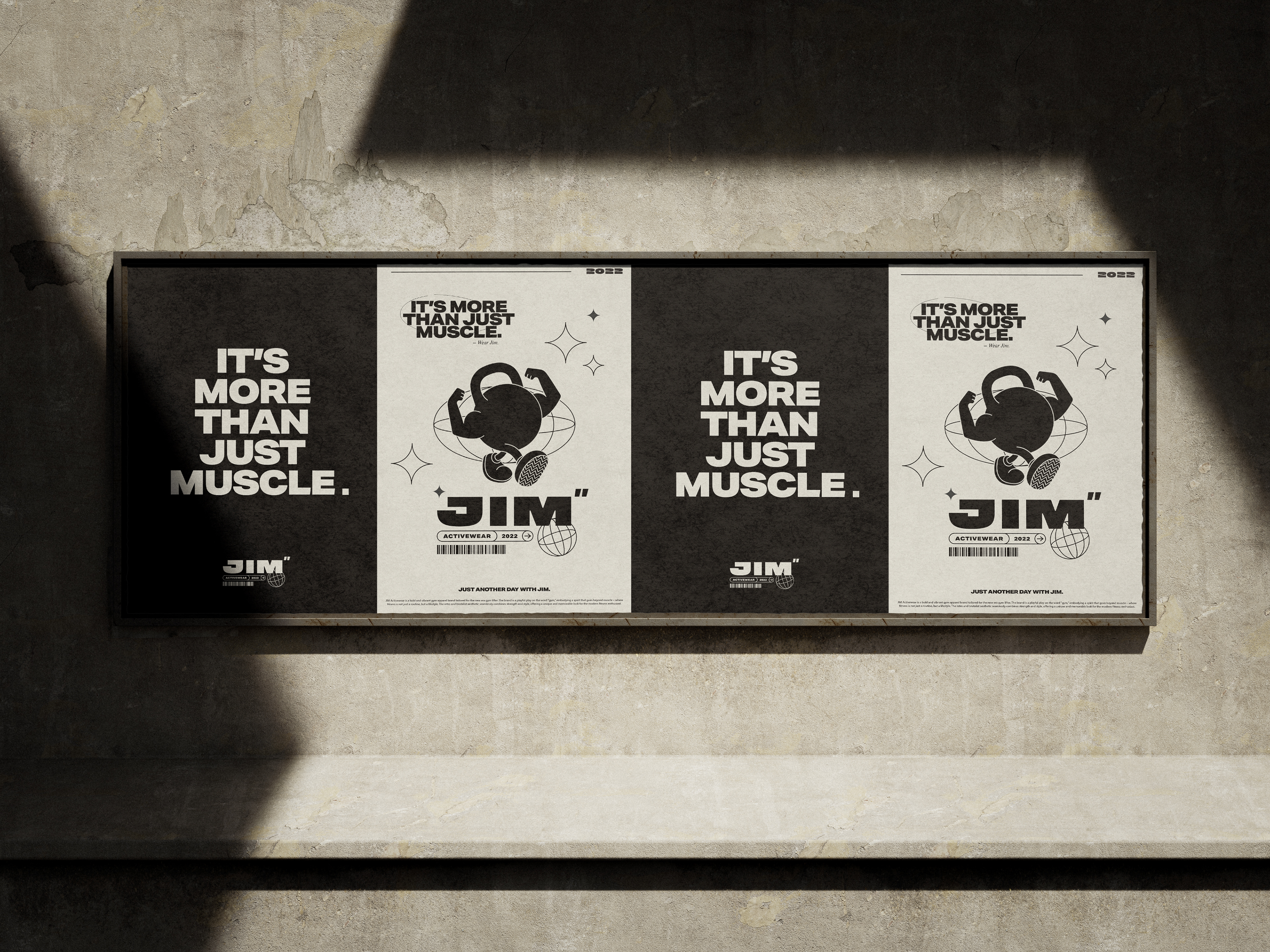In meticulously shaping the identity for JIM, I embarked on a dynamic exploration of design, seamlessly blending the bold ethos of the gym with a playful twist. This brand, ingeniously named as a play on the word “gym,” transcends the conventions of traditional fitness wear. The retro and brutalist aesthetic, adorned with bold typography and a refined neutral color palette, resonates with the new era gym lifter who seeks not merely muscle but a lifestyle. From conceptualising the logo to curating a foundational range of apparel, every facet of JIM Activewear embodies a resolute commitment to redefine gym fashion, infused with humour and a sleek aesthetic.
