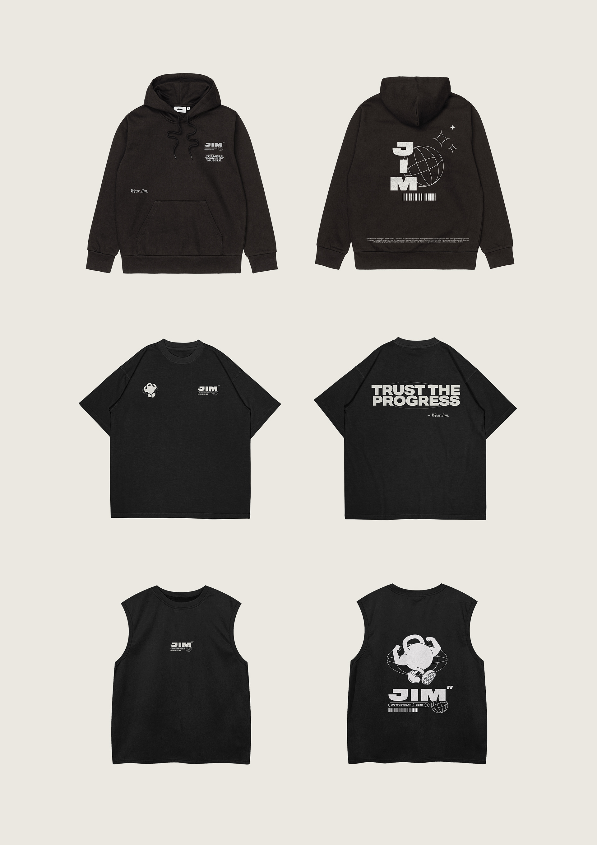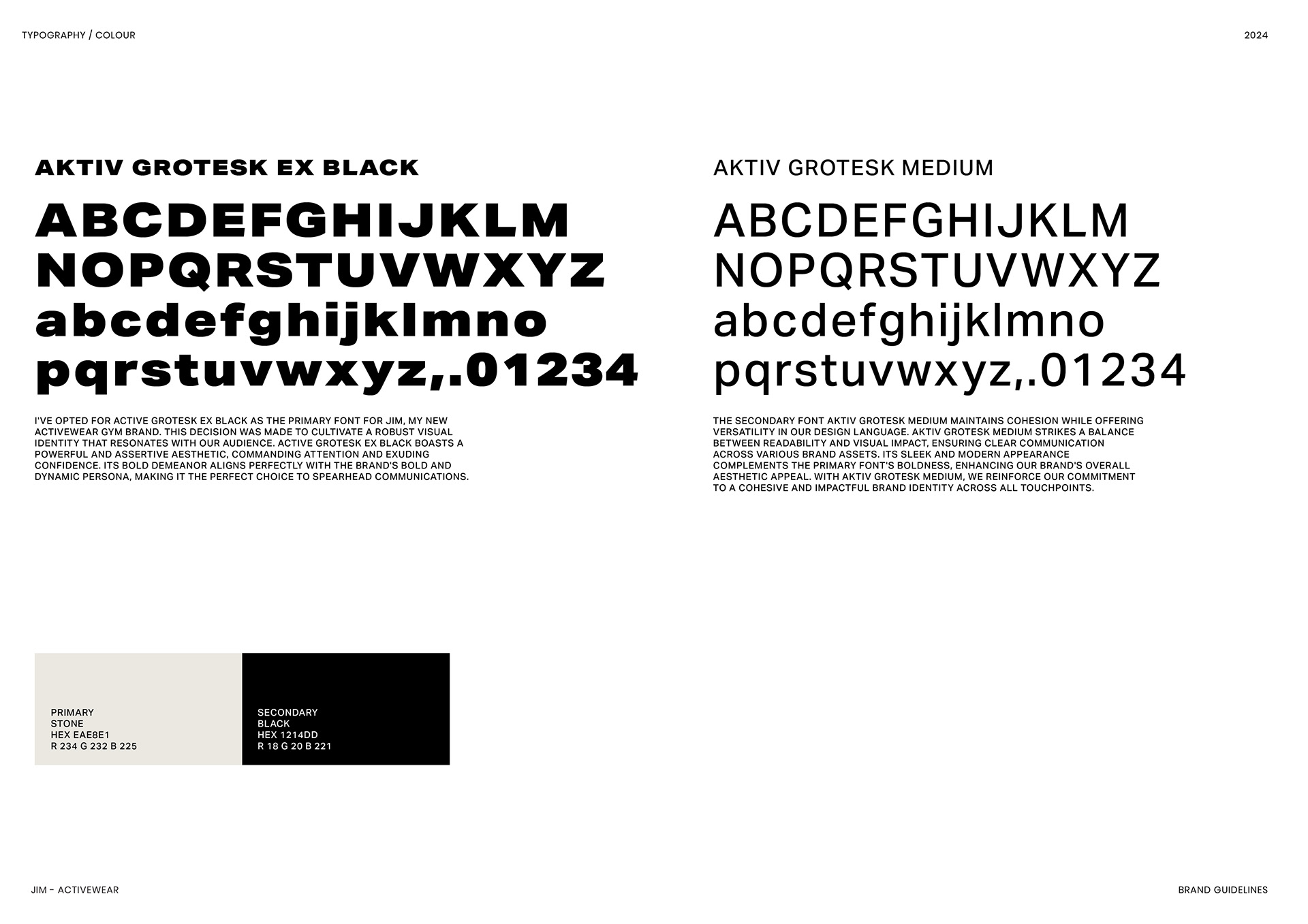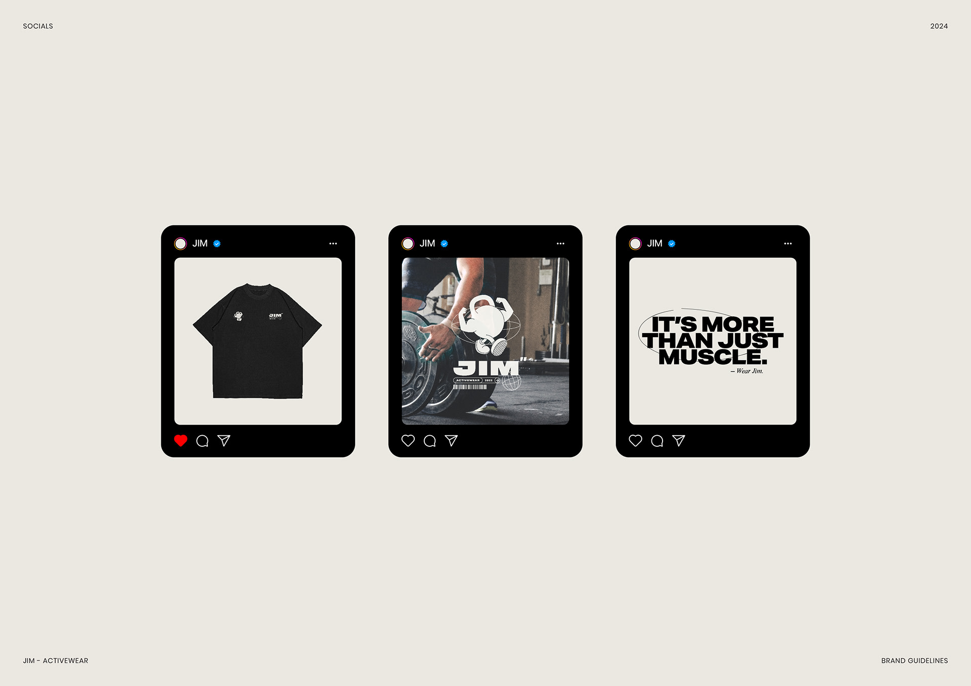 In meticulously shaping the identity for JIM, I embarked on a dynamic exploration of design, seamlessly blending the bold ethos of the gym with a playful twist. This brand, ingeniously named as a play on the word “gym,” transcends the conventions of traditional fitness wear. The retro and brutalist aesthetic, adorned with bold typography and a refined neutral color palette, resonates with the new era gym lifter who seeks not merely muscle but a lifestyle. From conceptualising the logo to curating a foundational range of apparel, every facet of JIM Activewear embodies a resolute commitment to redefine gym fashion, infused with humour and a sleek aesthetic.